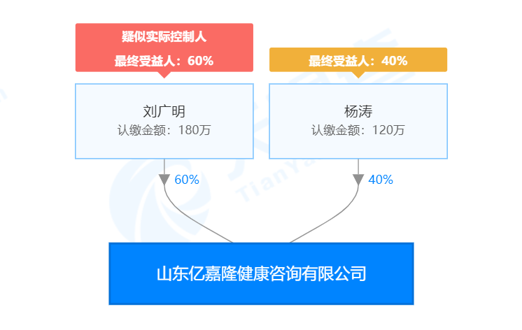 据天眼查显示,山东亿嘉隆健康咨询有限公司成立于2019年5月20日,注册资本为300万,实缴资本与参保人数均为0,法定代表人是杨涛,大股东是刘广明,该公司注册商标是“同利福”(05-医药)。
