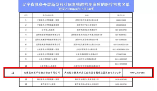 2月,晶泰医学通过辽宁省卫健委的技术审核,被指定为辽宁省卫健委新冠病毒核酸检测第三方医学检验实验室。