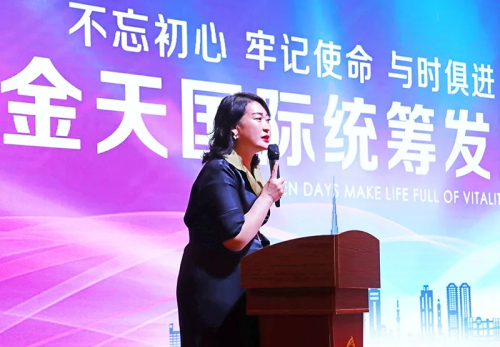 (金天国际统筹发展委员会副秘书长陈肖徽发布“统筹发展政策”)