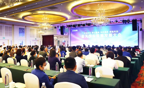 5月16日至17日,金天国际统筹发展大会在江苏宿迁金天国际大酒店成功召开,金天国际统筹发展委员会总顾问祖明军,金天国际统筹发展委员会总裁祖威,金天国际统筹发展委员会市场总裁樊保宏、营运总裁沈国锋、管理总裁兼秘书长邹雪萍、教育总裁王华英、商务总裁潘鸿昌、生态保养学院院长何浩民、首席直播官许吉、首席激励官李刚、副秘书长陈肖徽等新一届领导班子成员,及优秀市场领袖共200余人出席本次会议,明确企业发展战略、理念,发布经营举措,共同开启崭新篇章、拥抱美好未来。