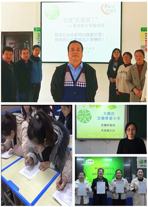 “教师健康保险”是宝健关爱园丁项目中持续开展的针对贫困地区乡村教师群体提供的一份爱心关怀。此项目已为近3000名乡村教师提供帮助,年度投入超过200万元。“教师健康保险”大大解决了广大乡村教师有病不敢看、看不起,甚至因病致贫等实际困难。目前已有多位教师通过保险项目,报销了大额医疗费用,减轻了经济负担,放大了单纯捐助的公益效果。宝健公益基金会还邀请合作保险机构专业人员专门为教师们答疑解惑、讲解操作流程,帮助教师们更方便、更容易地享有这份健康福利保障。