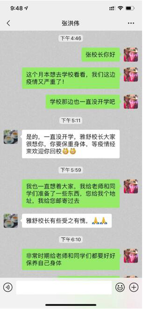 校长发来感谢