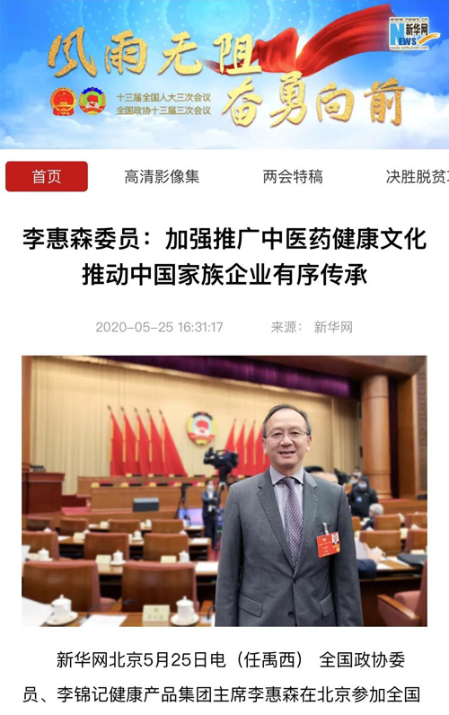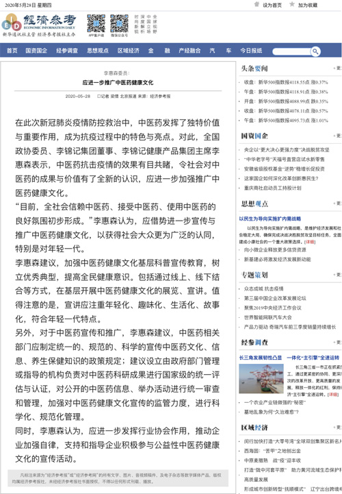 新华网、人民政协报、中国市场监管报、经济参考报、中国中医药报等权威媒体对李惠森先生的提案做了相关报道。