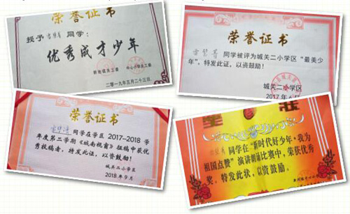 “说起这些奖状,还得益于北京国珍爱心基金会及支持学校建设的荣誉校长。新校舍落成之后,大家又给学校捐赠了很多音体美器材和书籍。”