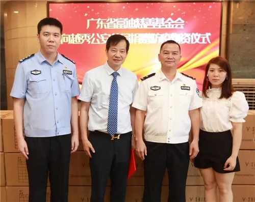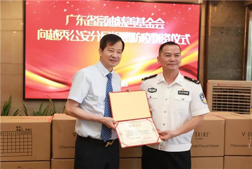 6月5日下午,曾连续八届荣膺中国十大慈善家、2016年度中国经济十大商业领袖、中国扶贫开发协会副会长、全国工商联美容化妆品业商会副会长、广东省第十二届人大代表、富佑集团董事局主席陈怀德先生代表富迪健康科技有限公司和广东省富迪慈善基金会向广州市越秀公安民警基金会捐赠价值10万余元的口罩、防护服、消毒液等物资,用于支援广州越秀区一线公安民警的疫情防控工作。