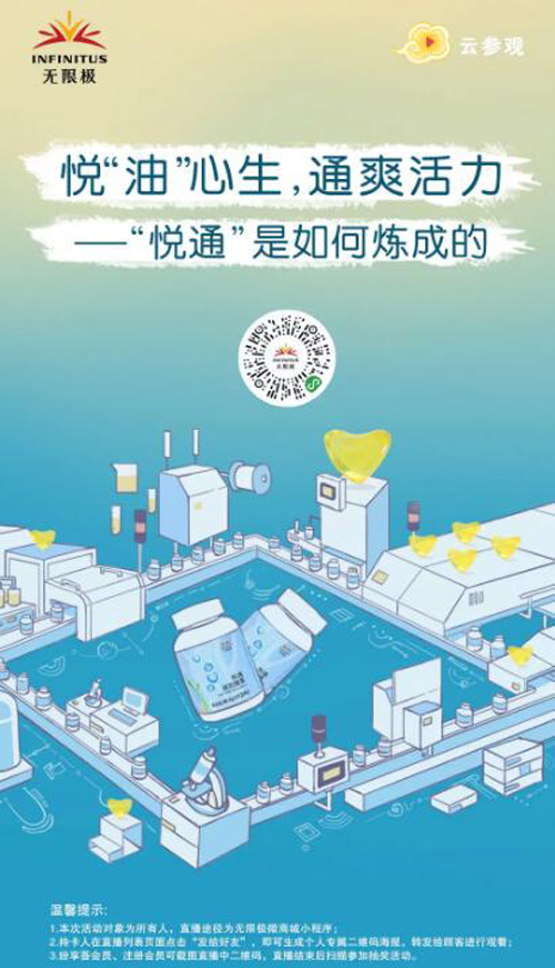 除了这场《悦“油”心生,通爽活力——“悦通”是如何炼成的》云参观活动以外,无限极还举办了“多糖揭秘之旅”“对话免疫力之解码生产线”等多种主题的在线参观活动,同时各地服务中心和专卖店同步举办以品质为场景的主题活动,线上线下融合发展,希望能让广大消费者和社会公众更直观、更深入了解无限极的生产全过程,见证公司实力和产品品质。