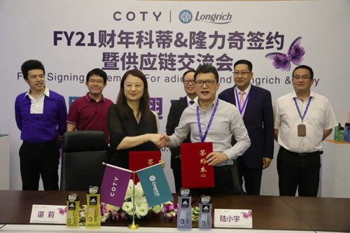 6月12日,科蒂公司与隆力奇签约暨供应链交流会在隆力奇隆重举行。会上,隆力奇与科蒂公司旗下个人护理品牌阿迪达斯签订2021年战略合作协议,共同开拓国内美妆市场。这是双方继2017年首度合作以来,第四次签署战略合作。科蒂大中华区首席财务官宫莉晶、科蒂集团大众美妆事业部大中华区销售副总裁谌莉、大众美妆事业部大中华区供应链总监陈海默、徐董、卡莱丽总裁陆小宇、隆力奇多品牌事业部总经理崔建等领导出席会议。