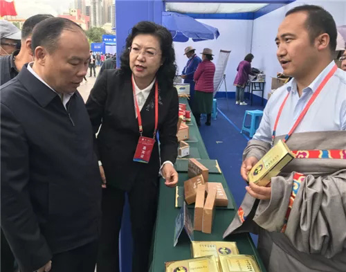 参展期间,青海省人民政府副省长杨逢春在青海省文化和旅游厅副厅长吕霞的陪同下莅临金诃藏药非遗展位,对于金诃藏药非遗事业表示充分的肯定,希望金诃藏药继续生产“好药”为人民的健康做出贡献。