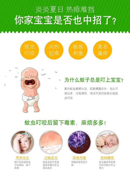 夏天到了,胖嘟嘟又爱出汗的小宝贝成了蚊虫的目标。孩子抓挠不注意,更容易导致发炎感染!宝宝肌肤娇嫩,处理蚊虫叮咬需要更加温和舒适的配方。
