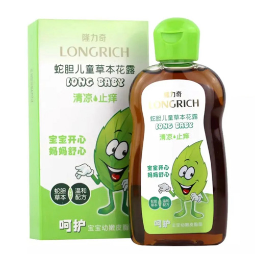 隆力奇畅销儿童蛇胆花露,专门筛选亲肤成分,添加蛇胆及众多草本植物精华,安全天然,快速消除蚊子、蜜蜂、蚂蚁等昆虫叮咬带来的痛痒、红肿等不适。在宝宝洗澡水中滴几滴,清凉止痒,温和祛痱,预防蚊虫。有效抑制及预防蚊虫叮咬后的细菌传播与感染,守护宝贝健康。