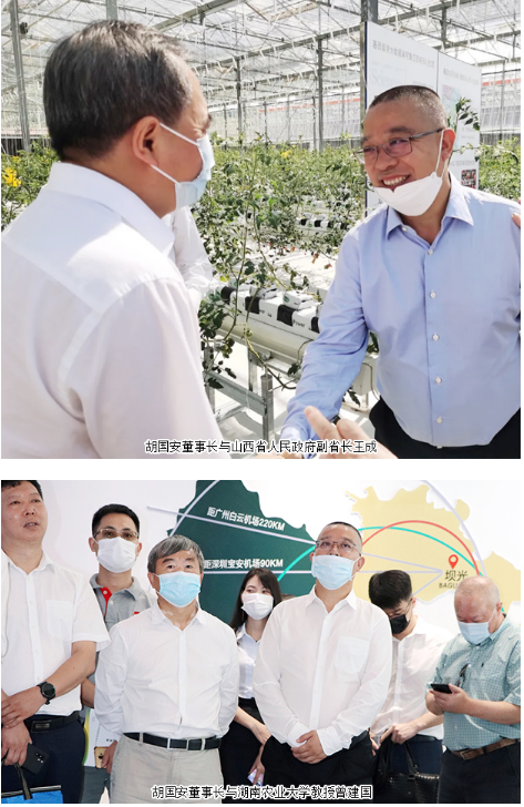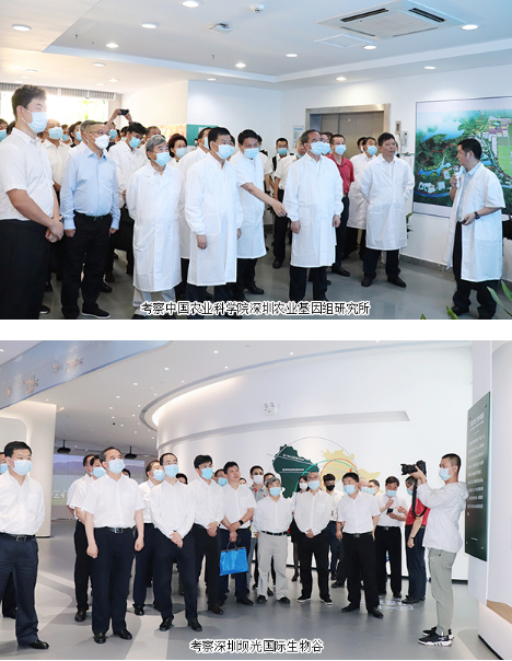 考察期间,胡国安董事长陪同山西省人民政府副省长王成、深圳市人民政府副市长黄敏等领导先后考察了中国农业科学院深圳农业基因组研究所、深圳坝光国际生物谷,与随行专家深入交流了科研产品的创新研发、产学研合作和原材料基地建设等相关事宜。