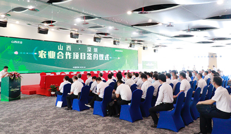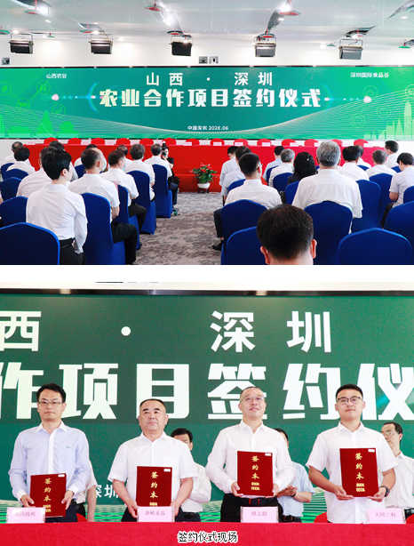 2020年6月19日,山西省人民政府副省长王成、省人民政府副秘书长梁敬华、省农业农村厅厅长鞠振、山西省晋中市人民政府市长常书铭、山西农业大学校长(院长)赵春明一行赴中国农业科学院(深圳)农业基因组研究所、深圳国际生物谷考察,并出席山西农谷·深圳国际食品谷合作项目签约仪式。深圳市人民政府副市长黄敏,中国农业科学院(深圳)农业基因组研究所所长黄三文,深圳大鹏新区党工委委员、管委会副主任刘峰,中国农业科学院(深圳)农业基因组研究所副所长饶敏杰,国家马铃薯产业科技创新联盟秘书长熊兴耀;湖南省工商联(总商会)副会长、绿之韵集团董事长胡国安,绿之韵集团特聘专家、湖南农业大学博士生导师曾建国教授等领导嘉宾出席活动。