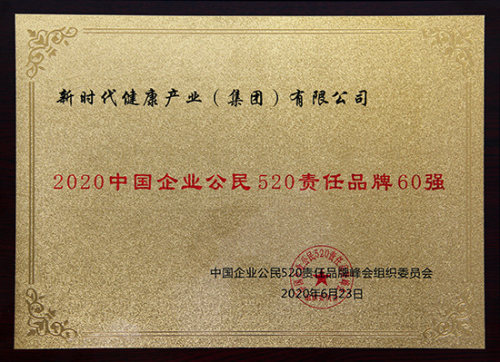 同心战疫,责任发力。日前,中国社会工作联合会企业公民委员会、腾讯公益慈善基金会、“520社会责任日”倡议委员会联合举办 “2020第五届中国企业公民520责任品牌线上峰会”,新时代健康产业集团因在抗击疫情、可持续发展、社会公益方面成果显著,荣获“2020中国企业公民520责任品牌60强”称号。