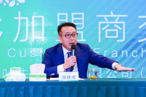 作为绿叶购项目的创始人,绿叶科技集团董事长徐建成从全球疫情冲击对世界经济造成的极大影响,以及疫情下居民消费降级的零售市场趋势出发,同时结合个人三十年的创业经历,推心置腹的解读了绿叶购超市项目成立的背景、优势和市场目标。他表示,只有回归刚需、低价、极致性价比,才能凸显新零售的核心竞争力,而绿叶购超市项目正是“重构绿叶、战略升级”的最佳途径。领先市场的加盟托管模式令加盟商甩手经营、轻松分润,丰富多样、优质低价的刚需生活产品贴合日前的居民降级消费,绿叶购的加盟模式和竞争优势令加盟商惊呼。