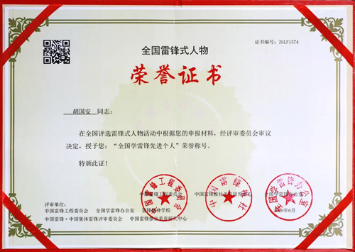 绿之韵胡国安荣膺“全国学雷锋先进个人”称号