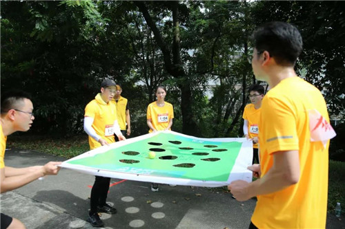 “世界球”,通过团队合作控制球从起点到达指定位置。即使偶尔的小失误使球坠落,队员们也没有抱怨和推脱,而是互相的鼓励与安慰,在一次次尝试中做得越来越好。