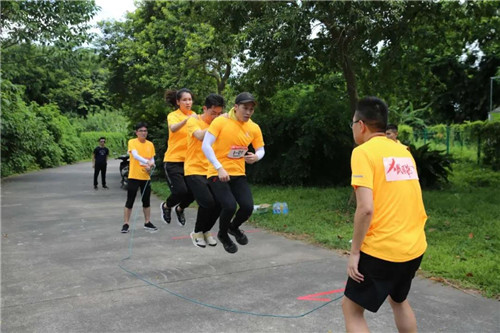 团队完成20次跳绳才算挑战成功。大家的动作整齐划一,绳起绳落间是队员们默契的跳动。
