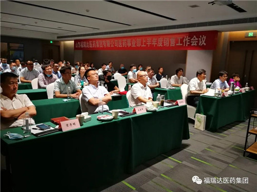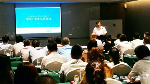 为全面总结上半年销售工作,分析存在的主要问题和面临的形势,安排部署下半年重点工作,7月14至17日,医药事业部在济南召开了上半年销售会议,同时于16日下午,举行了2020年上半年工作总结大会。福瑞达集团党委副书记、总经理贾庆文,财务总监许百强,医药事业部领导班子、各部门负责人及办事处经理以上人员参加了本次会议。