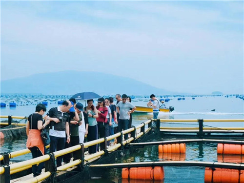 7月18日上午,学员们还考察了宁德市三都澳大黄鱼养殖基地,实地了解大黄鱼的养殖、加工程序,积极探寻大黄鱼产业带动旅游、餐饮、交通等相关产业蓬勃发展的合作商机。
