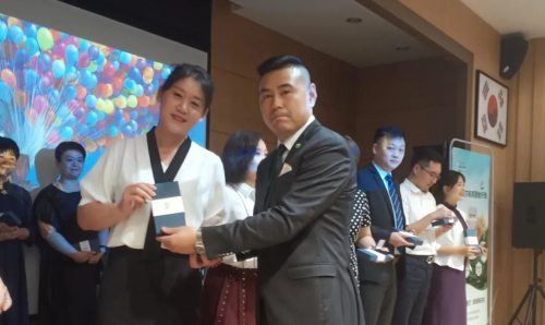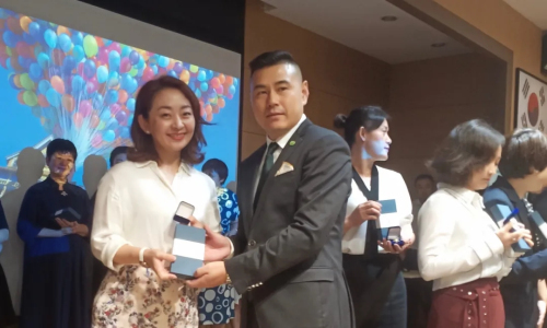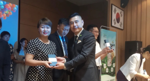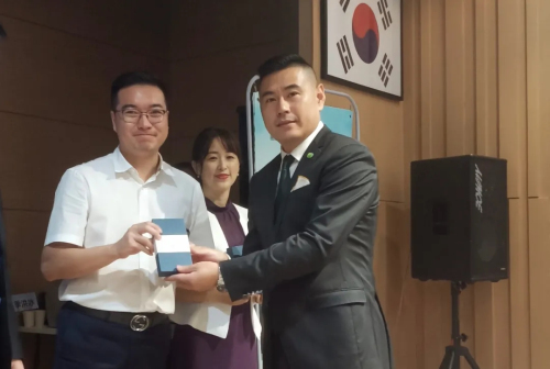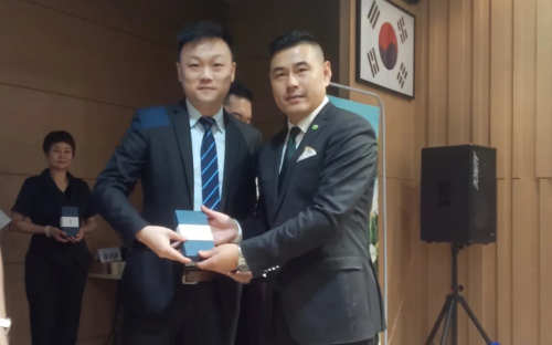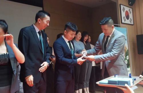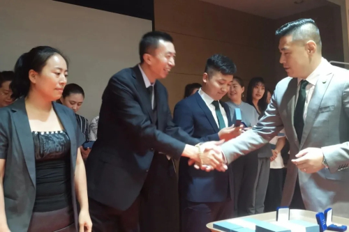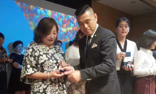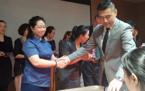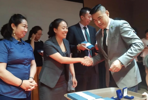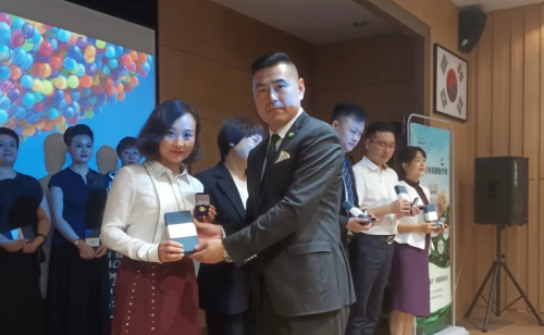 圃美多执行总裁朱晓辉先生为中级讲师们受聘徽章