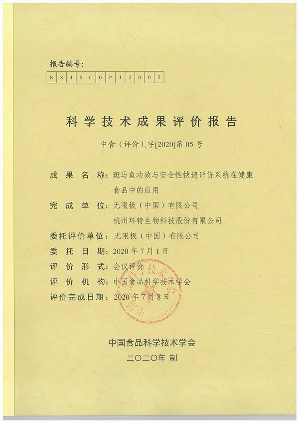 今年7月8日,无限极(中国)有限公司联合杭州环特生物科技股份有限公司共同研发的“斑马鱼功效与安全性快速评价系统在健康食品中的应用”项目,在北京通过了由中国食品科学技术学会组织的科技成果评价,受到来自食品、医药、营养、安全等多个领域权威专家一致认可。