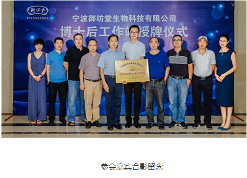 2020年7月28日,宁波御坊堂生物科技有限公司—浙江大学联合培养博士后开题审查会暨博士后工作站授牌仪式在三生会议中心圆满举行。