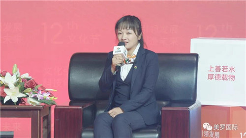 访谈最后,优秀员工代表郭艳娜女士将她在美罗国际集团17年的经历凝聚成了一个“爱”字,并下定决心通过她的工作将这份“爱”传递给更多的人,助力美罗国际走向更加美好的未来。