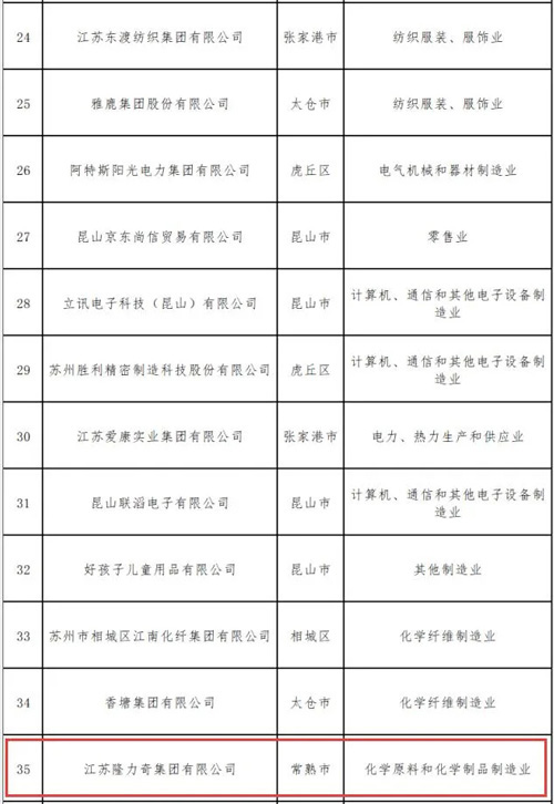 近日,苏州市工商联发布“2020苏州民营企业100强”榜单,隆力奇跻身2020苏州民营企业100强第35名。