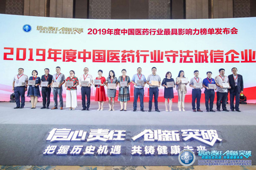 2020年8月7日,在“2020'第十三届中国医药产业发展高峰论坛暨2019年度中国医药行业最具影响力榜单发布会”上,集团既往年中国医药工业百强、 中国医药行业成长50强荣誉上,再次获评“2019年度中国医药行业守法诚信企业”殊荣,为集团在诚信建设上增添砝码。鉴于集团在战疫期间做出的卓越成就,组委会授予集团“抗疫慈善爱心企业”。御本堂集团同样获得守法诚信企业称号,集团董事长钮立卫作为中国中医药产教融合协会常务副会长,做《关于中医药产教融合促进委员会工作情况的报告》。