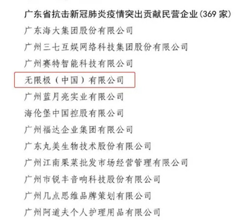 无限极获评广东省抗击疫情突出贡献民营企业
