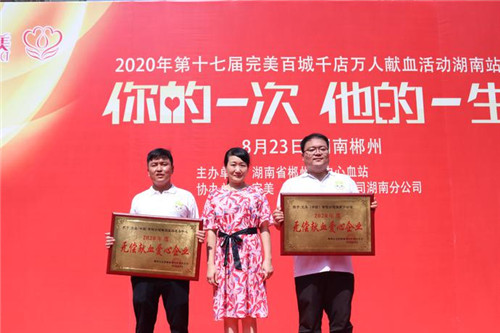 在活动启动仪式上,郴州市中心血站副站长史艾娟为完美公司颁发了“无偿献血爱心企业”奖牌。