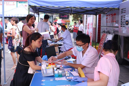 活动现场,大家纷纷排队填表、做检查