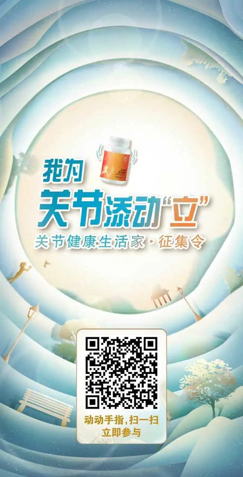 养护关节,人人有份。快扫描上方二维码,参加“我为关节添动‘立’”H5互动活动,定制朋友圈个性化海报吧!