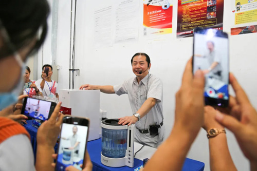 培训所在地的科里净水总裁张榕采社长对大家的到来学习表示热烈欢迎,随后,他与副总裁陈进勇带领学员们参观净水机工厂,科里净水机汇聚美、韩、新加坡、马来西亚等多国专家,凭借各项创新技术,赢得多项国际认证与奖项,在这学员们能从源头到制造了解产品的工艺与品质 。在现场,副总裁陈进勇还特别为大家讲解水机并作现场示范。
