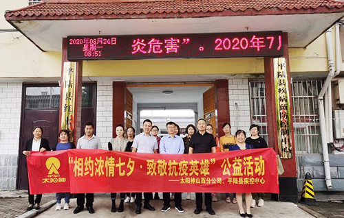 值此七夕佳节来临之际,为了向我们最尊敬的英雄表示崇高的敬意,太阳神山西分公司特别组织开展“相约浓情七夕·致敬抗疫英雄”公益活动,为我们心中最仰慕的英雄送上了真挚的祝福,并且为平陆县疾控中心每一位干部职工赠送价值200多元的保健品。