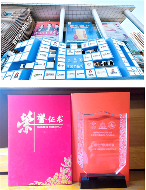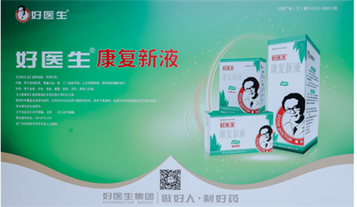 好医生康复新液是“国家重点新产品”“四川省名牌产品”“四川省中医药优势产品”,其产品及相关研究先后获得“华夏科技一等奖”“李时珍医药创新奖”“四川省科学技术进步一等奖”“四川省专利二等奖”“2017健康总评榜年度质量表现奖”等多项荣誉,并获评“2018年度民族中药匠心产品”“中国家庭常备肠胃药品牌”“中国药店店员推荐率高的品牌”“最具互联网影响力药品品牌”“2020消化系统用药‘钻石’品种”等多项荣誉,连续4年在中药大品种科技竞争力报告中荣获消化系统用药第一名,在业界建立了好医生的“好医生品牌”。