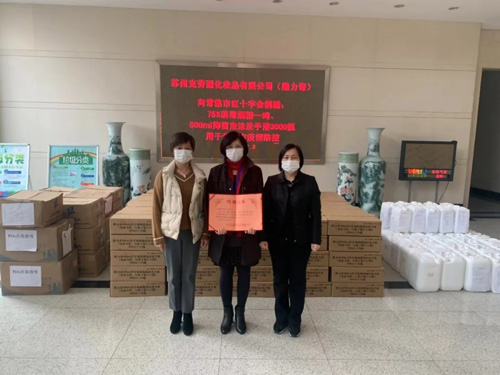 2020年,面对新冠肺炎疫情,隆力奇快速行动、及时跟进、勇担企业社会责任。累计向苏州红十字会、常熟红十字会等单位捐赠了10000瓶500ml抑菌洗手液和3吨75%酒精,专项用于苏州市各行政部门防治疫情和各工作人员抗击疫情工作时使用。另外,还定向新疆捐赠了10000个口罩。