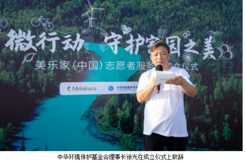中华环境保护基金会理事长徐光表示,生态文明建设是关系中华民族永续发展的千年大计。美乐家(中国)志愿者服务队的成立,不仅是一支小小的力量,也是一个大大的希望。希望志愿者们用实际行动做生态文明的践行者、推动者。