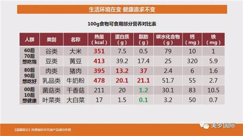 除此之外,他通过对60-70后、80-90后、00-10后不同年代人群饮食结构的分析,向人们展示了食用菌这种高蛋白、低脂肪、富含多糖及各类矿质元素的食材与人们现在营养追求的高度契合,也正是基于此,人们对食用菌才越发青睐。