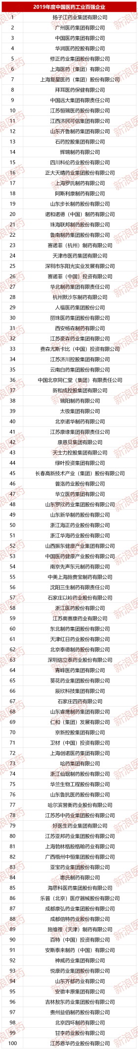 2019中国医药工业百强榜单 康恩贝第42位