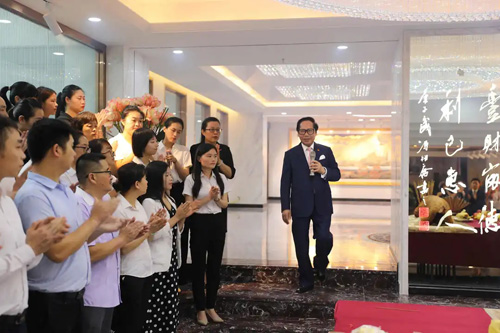董事长在简短的致辞中,结合当下外部环境,讲解了启用新办公区域的现实意义,并借助新办公区域落成的时机,表达金科伟业坚定发展的积极态度,获得全场热烈的掌声。