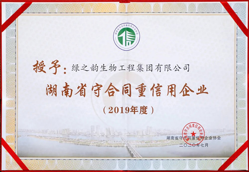 以诚取信,以信立誉。近日,凭借完善的企业诚信建设体系与科学的企业管理水平,经过层层申报、严格评审以及通过湖南日报、信用湖南网、湖南省守合同重信用企业协会官网等面向社会公示,绿之韵集团再次成功获评2019年度湖南省“守合同重信用”企业荣誉称号。