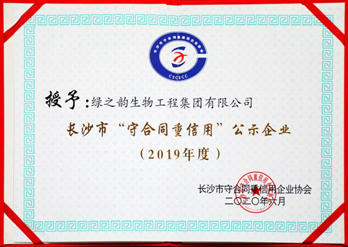 03、喜讯 | 绿之韵集团被评为长沙市“守合同重信用”公示企业