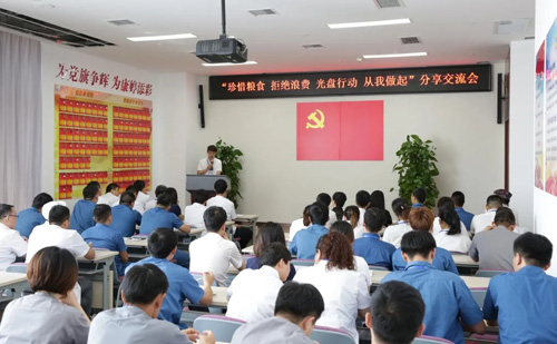 为了继续巩固和扩大取得的成果,推动职工在家居生活、企业工作、社会交往中提高节约意识,康婷集团以分享交流的形式,寓教于学、寓教于做,于2020年9月4日组织开展了“珍惜粮食 拒绝浪费 光盘行动 从我做起”分享交流活动。活动由工会主席屈洪伍主持,特邀集团总裁杨琪女士莅临参加。活动共分为三个部分,第一部分是观看节约粮食的视频片;第二部分是17名职工(姓名排序不分先后,杨会、李娜、张春颖、葛皓、付洋、王海龙、冯郸、殷蕊、王曾、于子发、芦永滨、范培浩、武冠男、刘帆、李金旭、冯佳斌、杨晶)分享他们在工作生活中勤俭节约的经验和实践,促进大家相互借鉴、相互学习、相互提高;第三部分是康婷集团对全体职工发出号召、提出要求:坚决制止餐饮浪费行为,切实培养节约习惯,在社会、企业、家庭中营造良好的勤俭节约氛围,承诺做到“厉行节约,从我做起;带头行动,有始有终,看到浪费,坚决制止;节约为荣,浪费为耻。”
