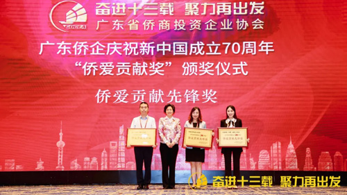 大会还举行了广东侨企庆祝新中国成立70周年“侨爱贡献奖”颁奖仪式。该奖旨在表彰在粤侨商爱国爱乡、勇于奉献、自主创新的精神,凸显广东侨商群体在新中国成立以来参与改革开放进程中的时代价值和突出贡献,鼓励广大侨商在新时代中继续壮大发展,再创辉煌。