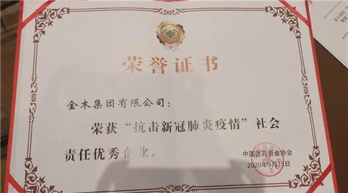 金木获评抗击新冠肺炎疫情社会责任优秀企业