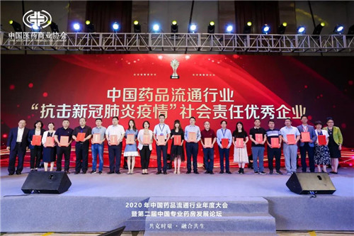 9月15日下午,由中国医药商业协会主办的“2020中国药品流通行业年度大会暨第二届中国专业药房发展论坛”在广州召开,大会上对疫情期间做出重要贡献的优秀企业和个人进行了表彰,金木集团荣获“抗击新冠肺炎疫情突出贡献优秀企业”奖项。