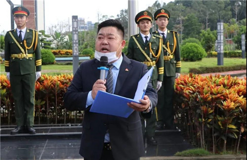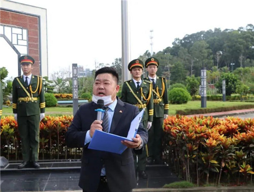 升旗仪式由公司副总胡兆广主持,徐承明副总做“不忘国耻,牢记使命”的国旗下讲话。