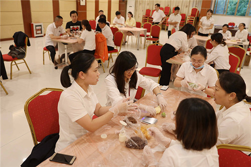 9月18日,中秋节来临之际,由安惠联合工会组织开展的“工会大学堂培训——冰皮月饼DIY活动”举行,30多位员工代表参加了活动。安惠联合工会邀请了专业的烘焙老师来为大家授课。活动现场,老师采用理论和实际操作相结合的方式,用生动幽默的语言讲解和展示了冰皮月饼的制作流程。在场的员工们都迫不及待地开始动手制作月饼,他们从和面、揉面、擀面、包馅,再到最后给月饼压模,一气呵成。制作过程中,大家还不时互相“比美”,整个活动现场洋溢着浓浓的欢乐氛围。