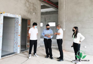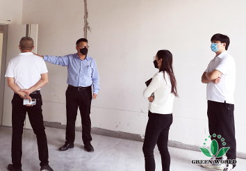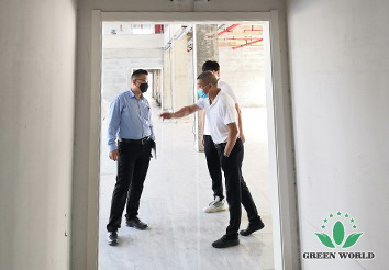 2020年9月18日,在交付使用时间紧、工程任务重的情况下,绿世界电商中心总监张国彬迎难而上,在百忙之中抽出时间莅临南京生产基地,对新厂房的装修工程提供专业指导和建设性意见。